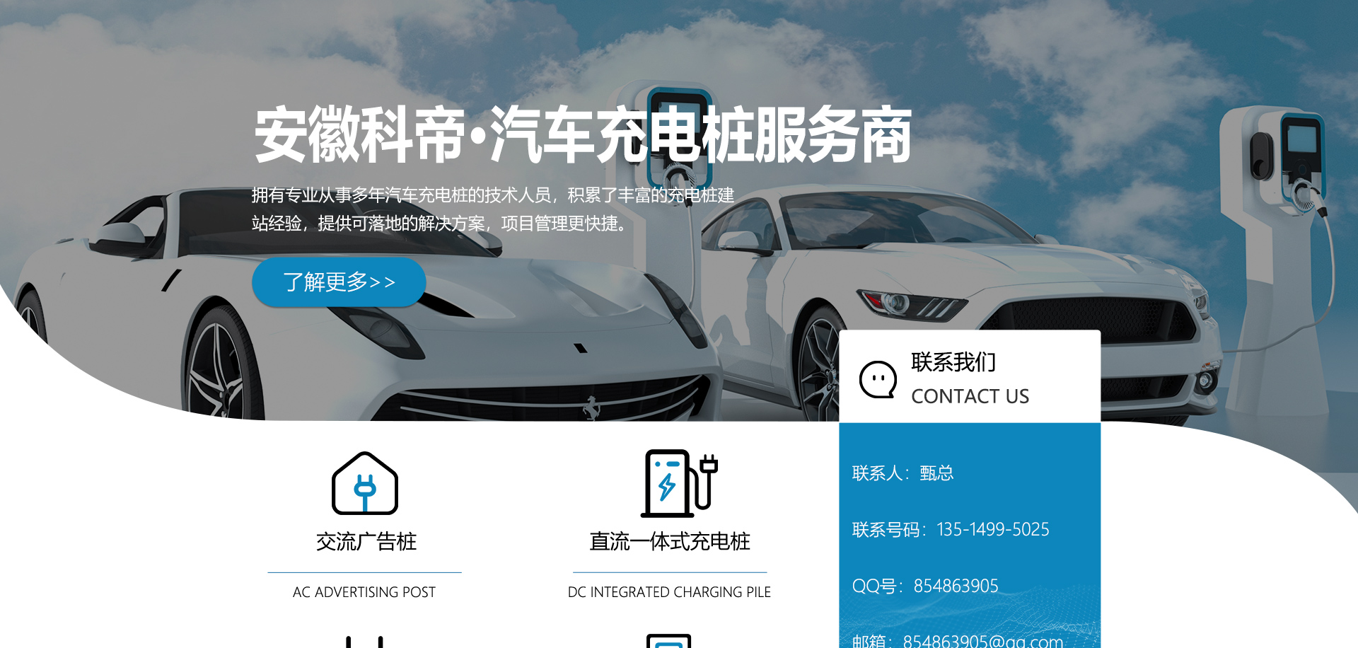 關(guān)于我們安徽科帝新能源科技有限公司坐落于安徽省會(huì)-合肥,是一家研發(fā)、生產(chǎn)智能充電樁設(shè)備,汽車充電站后臺(tái)監(jiān)控管理系統(tǒng)和生產(chǎn)高壓開關(guān)設(shè)備的企業(yè).由專門的研發(fā)團(tuán)隊(duì)、管理團(tuán)隊(duì)按照現(xiàn)代化企業(yè)制度規(guī)范設(shè)立的有限責(zé)任公司。致力于為能源智能、安全的應(yīng)用和節(jié)能減排提供整體的技術(shù)與產(chǎn)品解決方案。科帝集研發(fā)、設(shè)計(jì)、生產(chǎn)、銷售以及服務(wù)于一體,在電動(dòng)汽車充電方案,充電設(shè)施建設(shè)和城市配電方面擁有廣泛的技術(shù)研究及經(jīng)驗(yàn)積累,為客戶提供安全、智能的充電設(shè)備及充電運(yùn)營站建設(shè)一體化解決方案。并堅(jiān)持以人為本、質(zhì)量為先、顧客至上、不斷創(chuàng)新”的企業(yè)理念,為能源行業(yè)的發(fā)展、節(jié)能減排做出重大的貢獻(xiàn)。公司擁有豐富的產(chǎn)品種類,目前科帝已研發(fā)生產(chǎn)了三十多種產(chǎn)品,充電設(shè)備有直流一體式充電樁、直流分體式充電樁、直流廣告樁、交流廣告樁、廣告一體樁、壁掛交直流樁;等多種充電設(shè)備;每一款產(chǎn)品都是精心打造,力求為客戶提供優(yōu)越的用戶體驗(yàn)。展望未來科帝將通過持續(xù)的自...